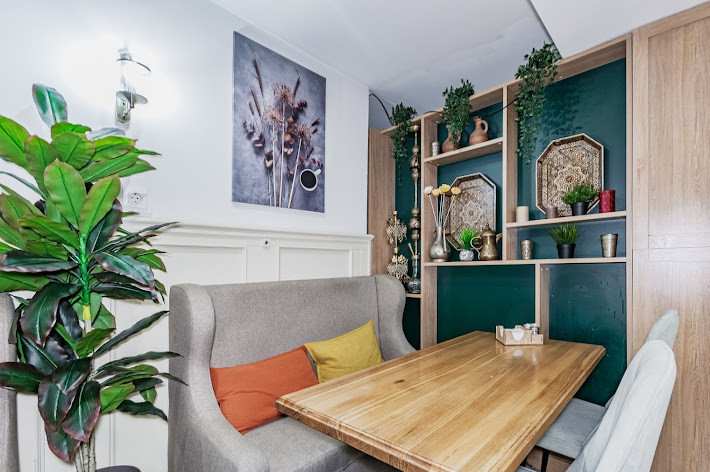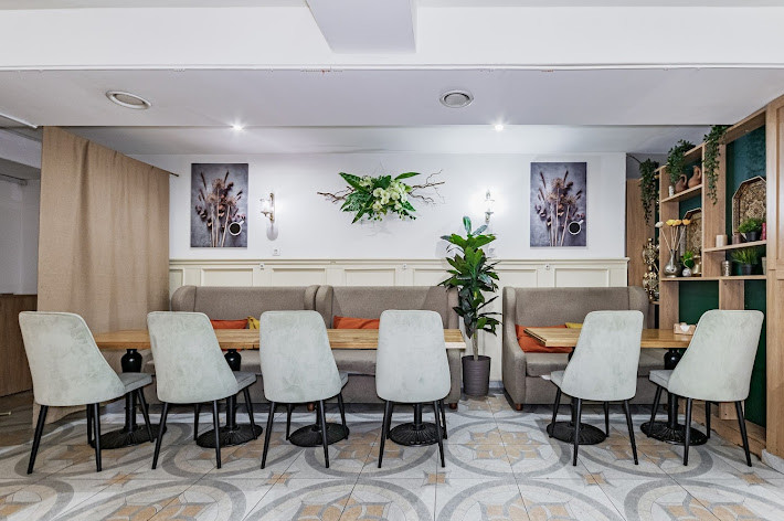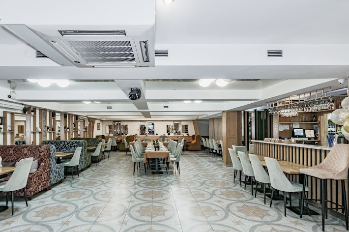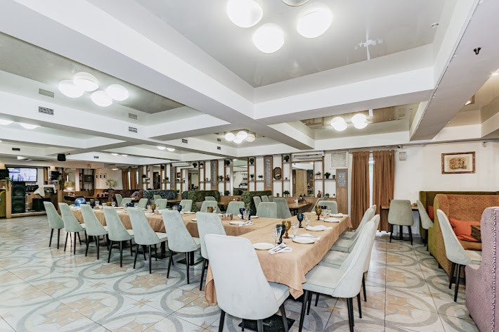 В зале стильный интерьер в светлых тонах. Гости могут расположиться за столиками на удобных стульях или мягких диванах, либо выбрать кабинку на 8-10 человек. В заведении часто проходит развлекательная программа с живой музыкой и завораживающими восточными танцами в исполнении привлекательных девушек в ярких нарядах.