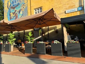 Здесь обязательно стоит попробовать фирменные угощения от шеф-повара: фаруж табака, табули и фалафель и, конечно же, сочный шашлык, люля-кебаб и другие блюда на мангале. К любому яству вам посоветуют пряный соус, который усилит вкусовые качества ингредиентов. Здесь также пекут ароматный хлеб и лаваш, а на десерт предлагают попробовать тирамису, чизкейк, блинчики с бананом и сыром или яблочный штрудель.