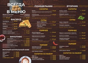 В барной карте представлен широкий ассортимент безалкогольной продукции и горячительных напитков: ягодные морсы, фруктовые соки, полезные смузи, детоксы, молочные коктейли, домашний авторский чай с ягодами и травами, бодрящий кофе с добавками, игристое, белое и красное вино из разных стран, светлое и темное пенное, коньяк, бренди, виски, текила, вермут и прочее.
